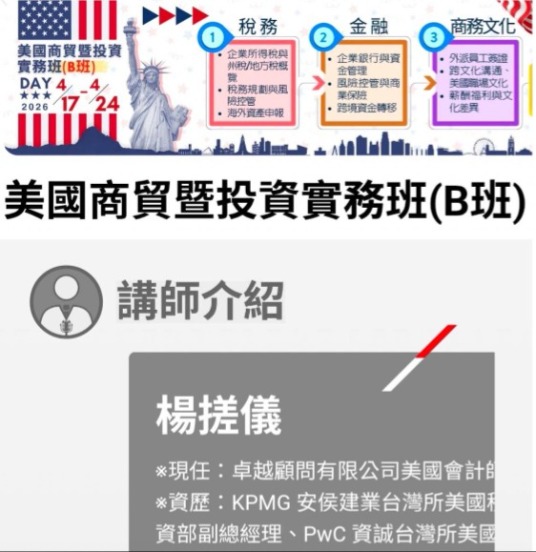 4/17 4/24受邀IEAT 2026 參與美國商務暨投資實務班專業講師團